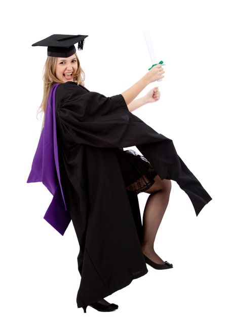 Graduation student excited isolated over a white background