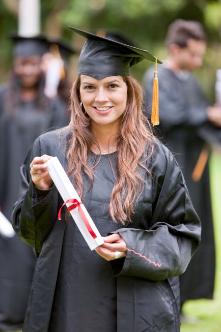 graduation woman smiling and looking happy outdoors