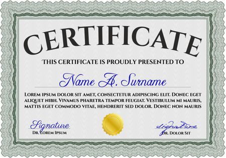 Green Certificate. Detailed. Complex design. Printer friendly.