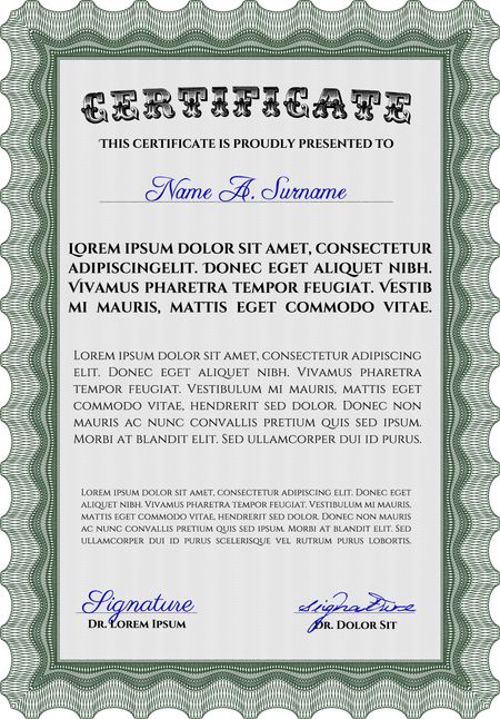Green Certificate or diploma template. Good design. Border, frame. With background.