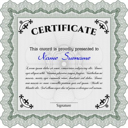 Green Certificate template or diploma template. Superior design. Complex background. Vector pattern that is used in currency and diplomas.
