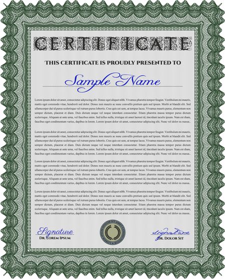 Green Certificate template or diploma template. Superior design. Vector pattern that is used in currency and diplomas.Complex background.