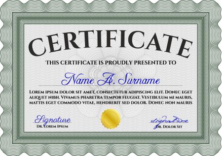 Green Certificate template or diploma template. Superior design. Complex background. Vector pattern that is used in currency and diplomas.