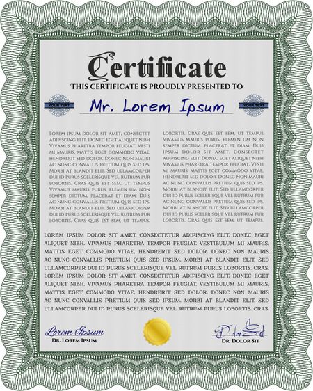 Green Diploma or certificate template. Vector illustration. With complex background. Lovely design.