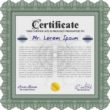 Green Diploma template. Vector illustration. With complex background. Excellent design.