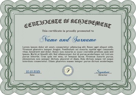 Green horizontal certificate or diploma template