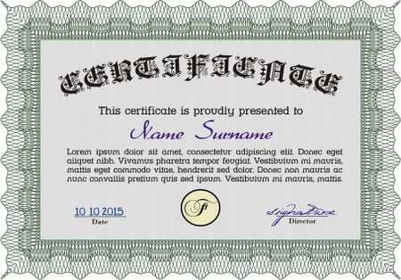Green horizontal certificate or diploma template