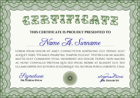 Green isolated frame for certificate, diploma or coupon. Very complex design.