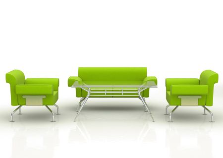 green office sofa and armcharis with table - isolated over a white background