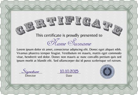 Green Sample Diploma. With linear background. Modern design. Frame certificate template Vector.