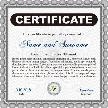 Grey Certificate. Complex design. Printer friendly. Detailed.