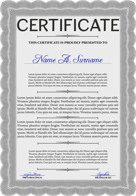 Grey Certificate template or diploma template. Superior design. Vector pattern that is used in currency and diplomas.Complex background.