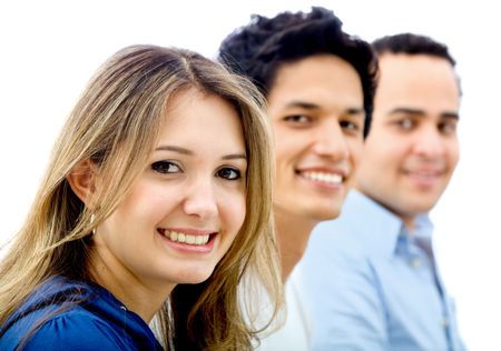 group of business people smiling isolated over a white background