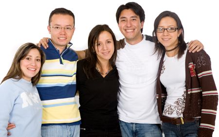 group of casual young people over a white background