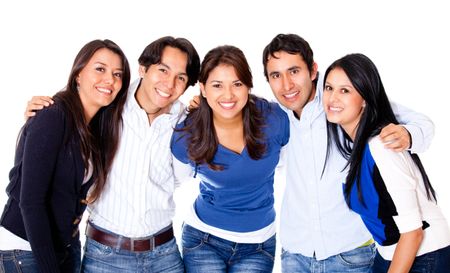 Group of close friends together - isolated over a white background