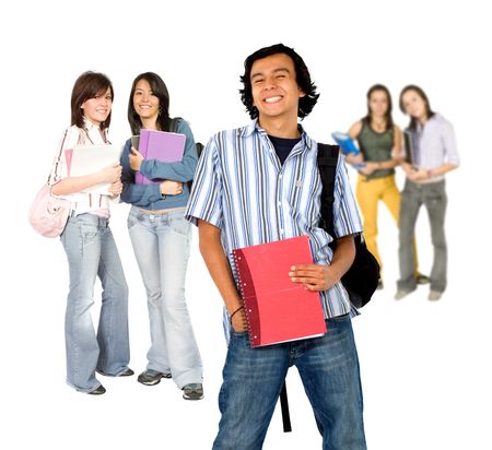 Group of college or university students isolated on white
