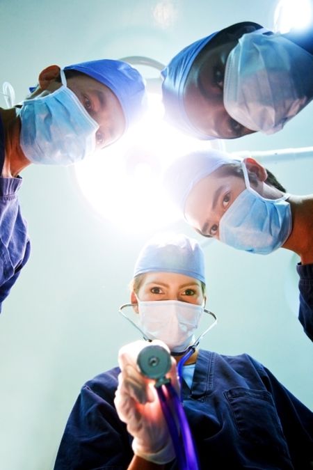 group of doctors in a hospital during surgery