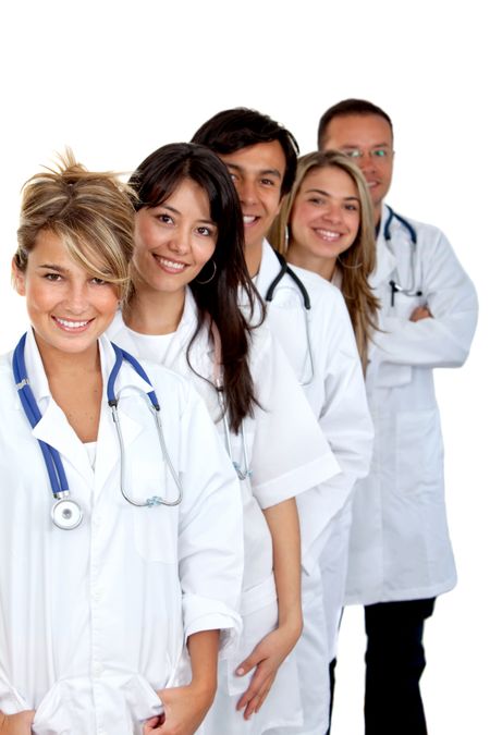 Group of doctors isolated over a white background