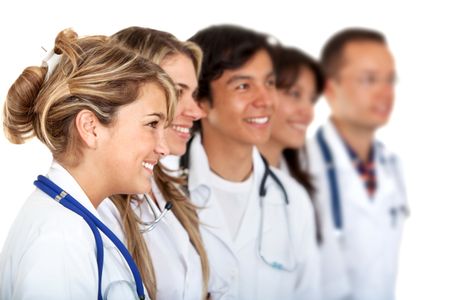 Group of doctors smiling isolated over white