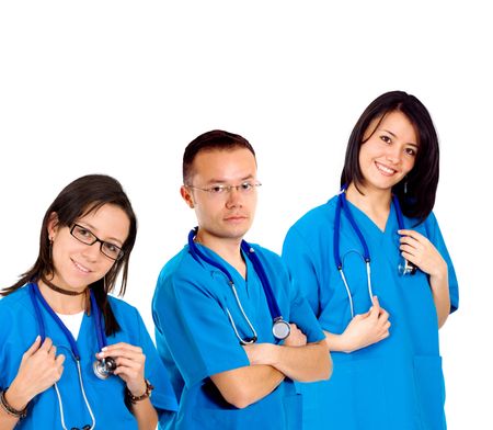 Group of doctors in surgical uniform isolated