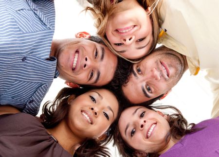 Group of friends with their head together in the middle isolated