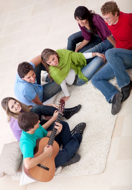 Group of friends playing music and singing