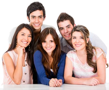 Group of friends smiling - isolated over a white background