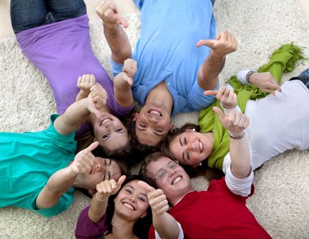 Group of people on the floor with thumbs up