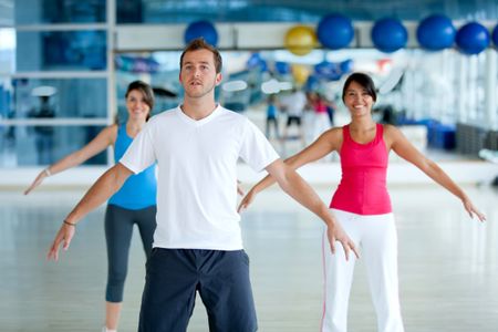 Group of people at the gym stretching