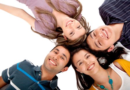 group of people with their heads together on the floor