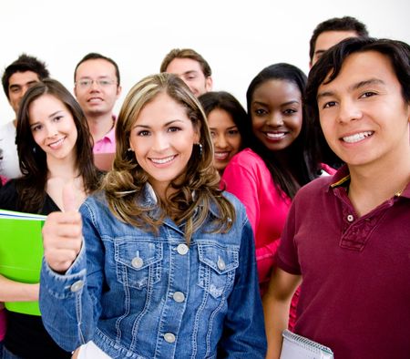Group of university students smiling and holding notebooks