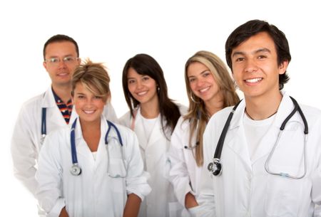 Group of young doctors isolated over white