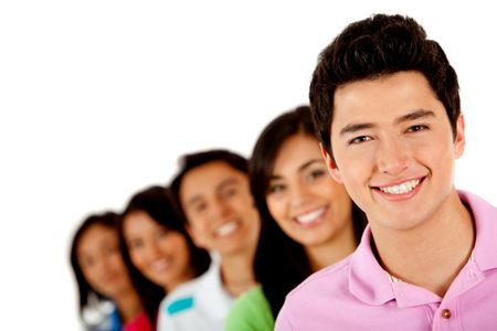 Group of young people in a row � isolated over a white background