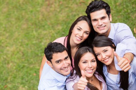 Group of young people with thumbs up outdoors