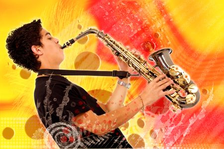 guy playing the saxophone over a colorful background