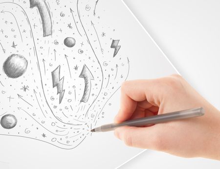 Hand drawing abstract sketches on a plain white paper
