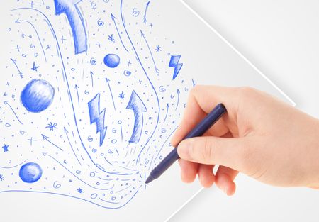 Hand drawing abstract sketches on a plain white paper