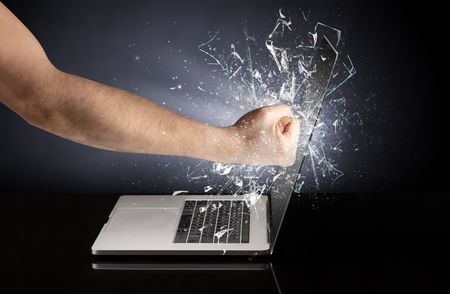 Hand hitting strongly laptop screen glass