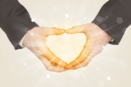 Hands creating a form with yellow shines in the center