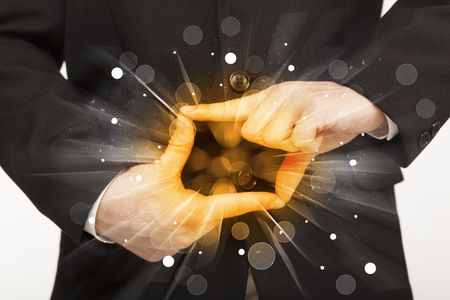 Hands creating a form with yellow shines in the center