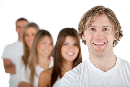 Handsome man leading a group - isolated over a white background