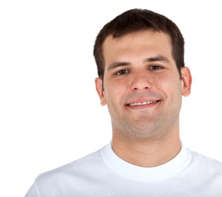 Handsome man portrait smiling - isolated over a white background