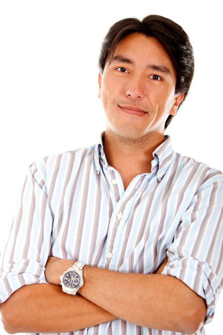 Handsome man smiling ? isolated over a white background