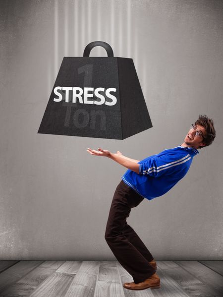 Handsome young boy holding one ton of stress weight