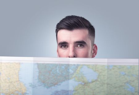 Handsome young man holding map