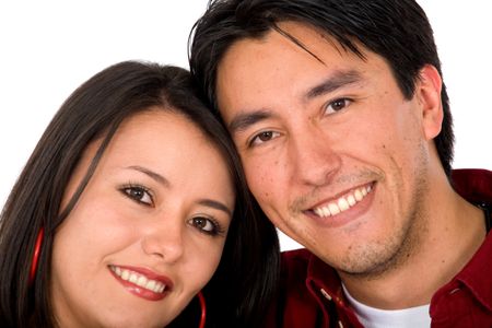 happy brother and sister portrait smiling over a white background