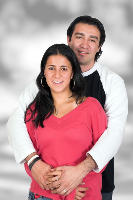 happy casual couple with a monochrome backdrop