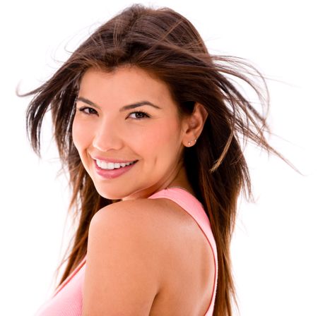 Happy causal woman smiling - isolated over a white backgorund