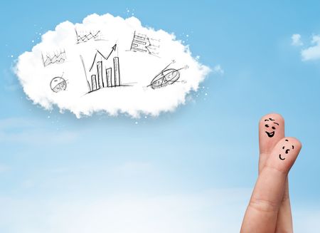 Happy cheerful smiley fingers looking at cloud with hand drawn charts