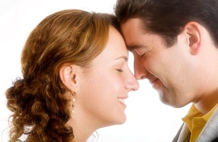 happy couple full of love over a white background with soft focus